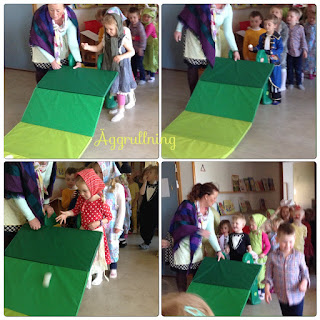 Vi samlades i "Busgruppen" för att tillsamman komma fram till hur vi skulle bygga Bus hus, träd och vad vi mer behövde. Vi gjorde huset med hjälp av mjölkkartong som vi klädde i papper och målade. Några byggde skorstenen av små träbitar, några mätte klippte ut och ritade dörren och fönstren. Vi diskuterade hur vi skulle blanda olika färger när vi skulle måla ön grå och provade till slut att blanda vitt och svart! I skogen hittade vi en gren som vi fyllde med löv , med hjälp av silkespapper. Nu har vi bara lite små detaljer kvar...