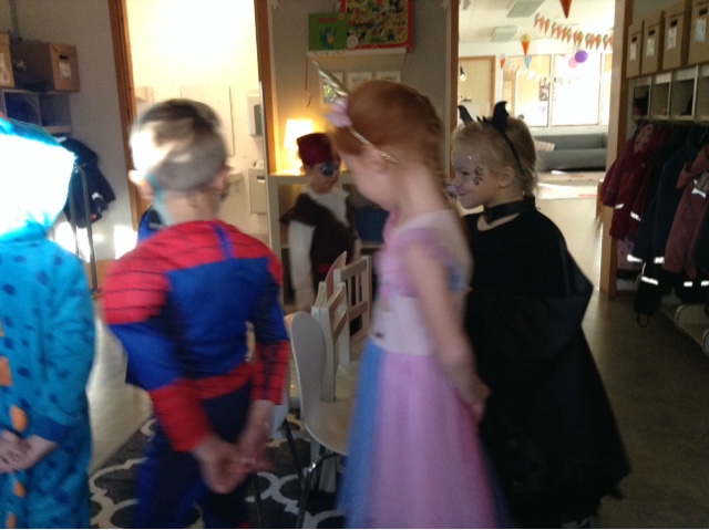 Idag var det fest hos Planeten och månen! Fantasifullt utklädda sjöng och lekte vi lekar( "hela havet stormar, kims lek och sätt näsan på clownen) Vi fick popcorn, saft och kex innan vi rockade loss på dansgolvet!